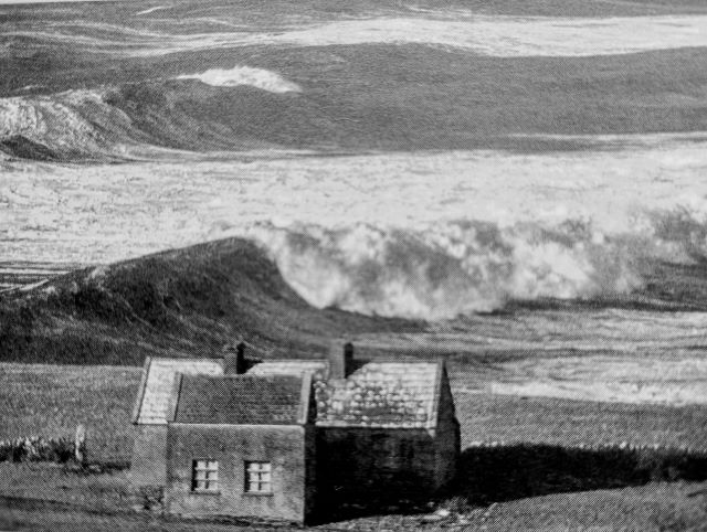 The old cottage stands as a stronghold against the calamity. The storm is a dragon. Icy fangs bite down on the home as electrified claws tear through land and sea. Colossal wings blow the sea into a rage. The mass of shadow rushes towards the shore, crashing down in a spray of spirits. One torrent ricochets off another, slamming down on its prey. The cottage.